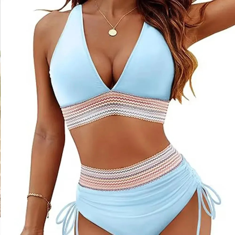 2024 Solid Color Drawstring Bikini Set Fashion High Waist Separate Patchwork Swimwear Drawstring Women Swimsuit Women