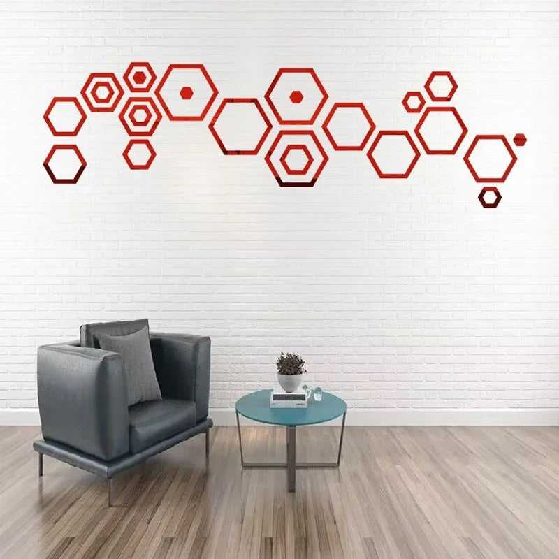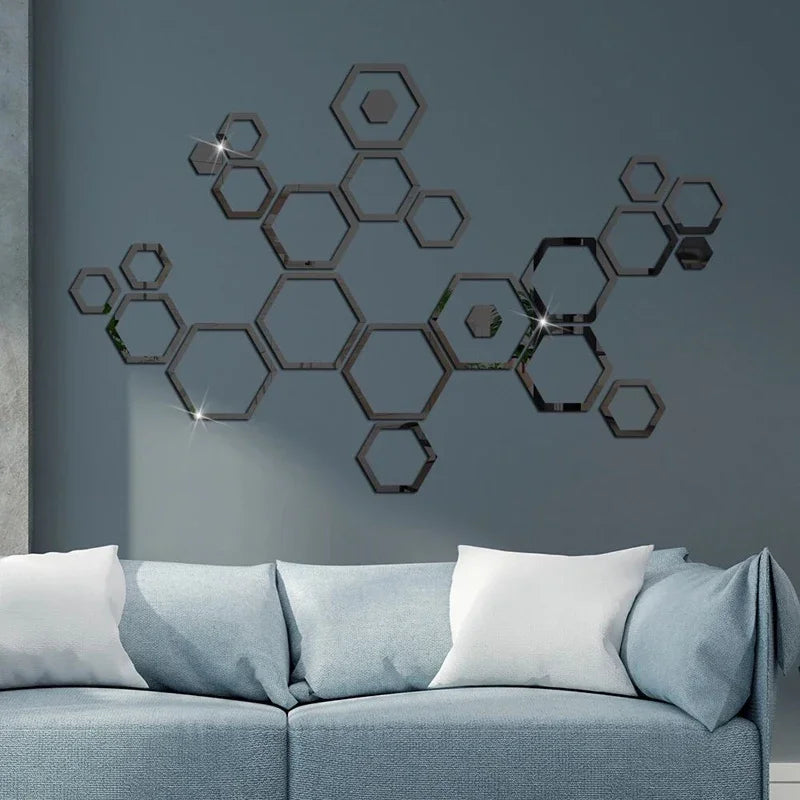 3D Hollow Hexagonal: Mirror Wall Stickers