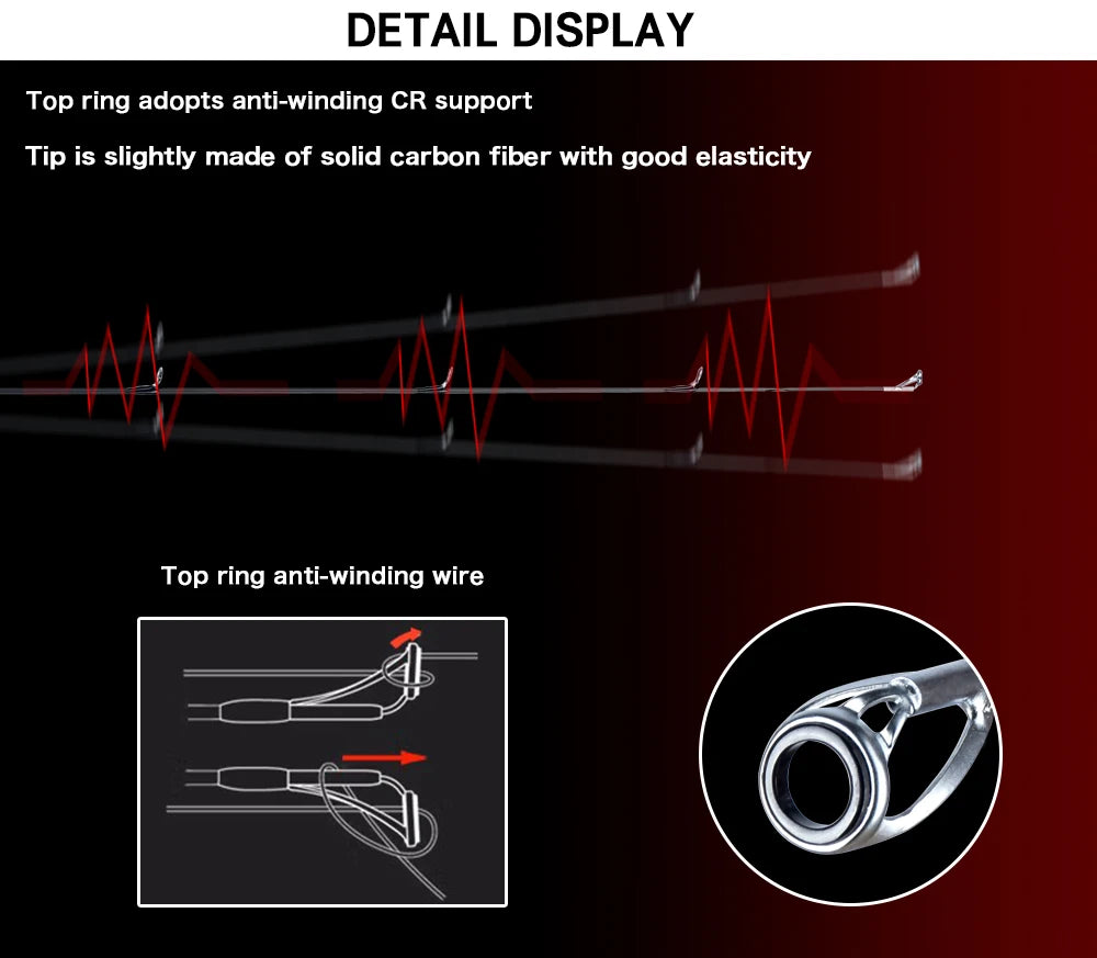• Carbon Material :Made from carbon, this fishing rod is lightweight and durable, making it perfect for long fishing trips.