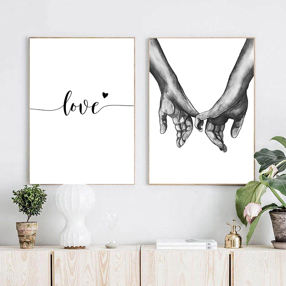 Black White Style Sweet Love Wall Art Canvas Poster Minimalist Hand In Hand Print Painting Picture For Living Room Bedroom Decor