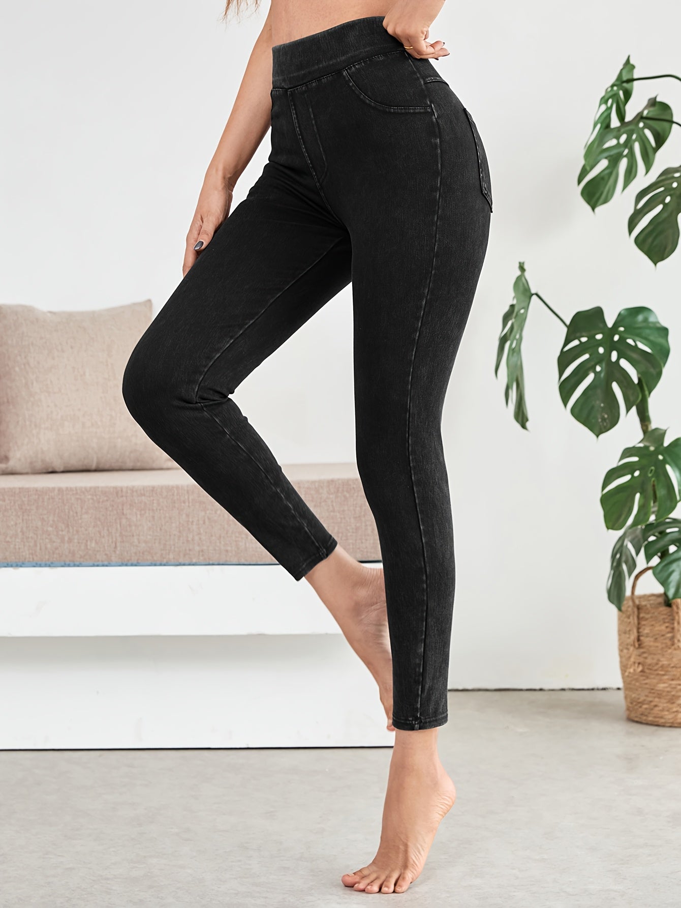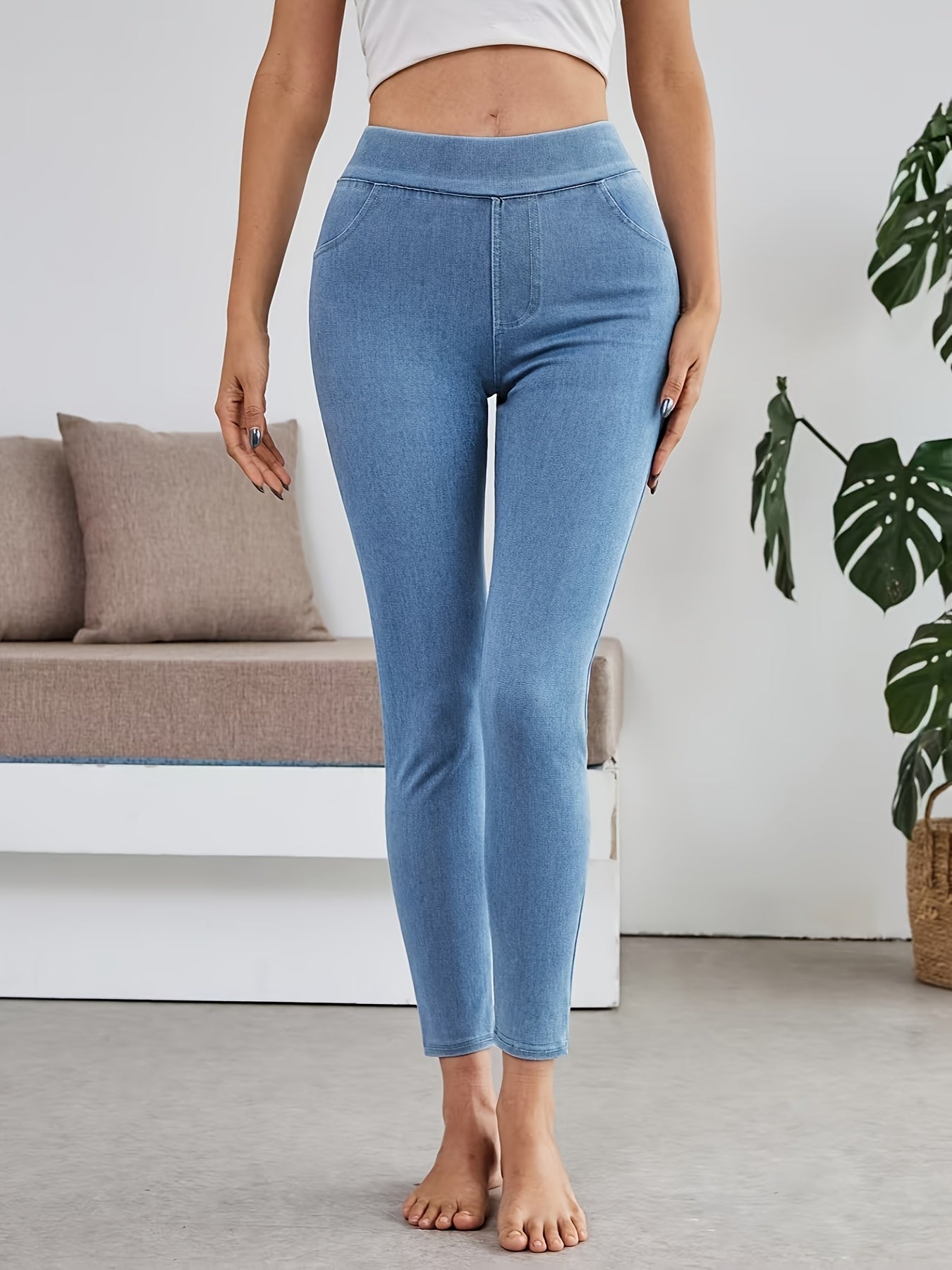 Women’s High Waist Stretch Denim Leggings – Ultra Soft & Real Denim Finish